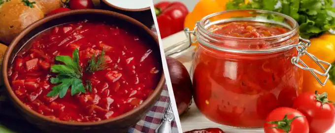 Met deze handige en lekkere dressing in potjes kun je in 20 minuten borsjt klaarmaken. Borscht dressing voor de winter met kool en tomatenpuree Op het