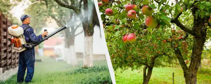 Maak een oplossing waarmee je voorkomt dat bladluizen binnen een meter van je appelbomen komen. Bladluisbehandeling op appelbomen / collage My, foto depositphotos.