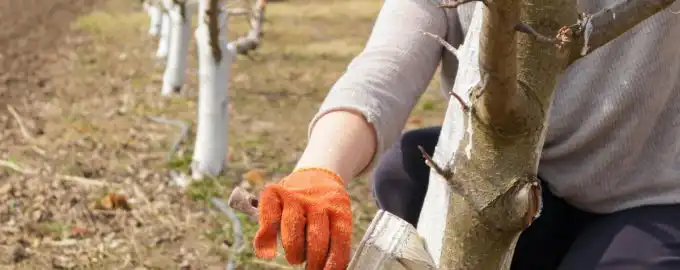 Het witwassen van bomen in de lente beschermt zaailingen tegen overmatige zon. Bomen witwassen beschermt de tuin in de lente / foto depositphotos.