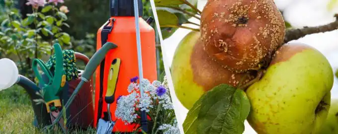 Om alle appels vers te houden tot de vorst, behandel je appelbomen met een speciaal mengsel. Hoe fruitbomen te behandelen tegen fruitrot / collage My
